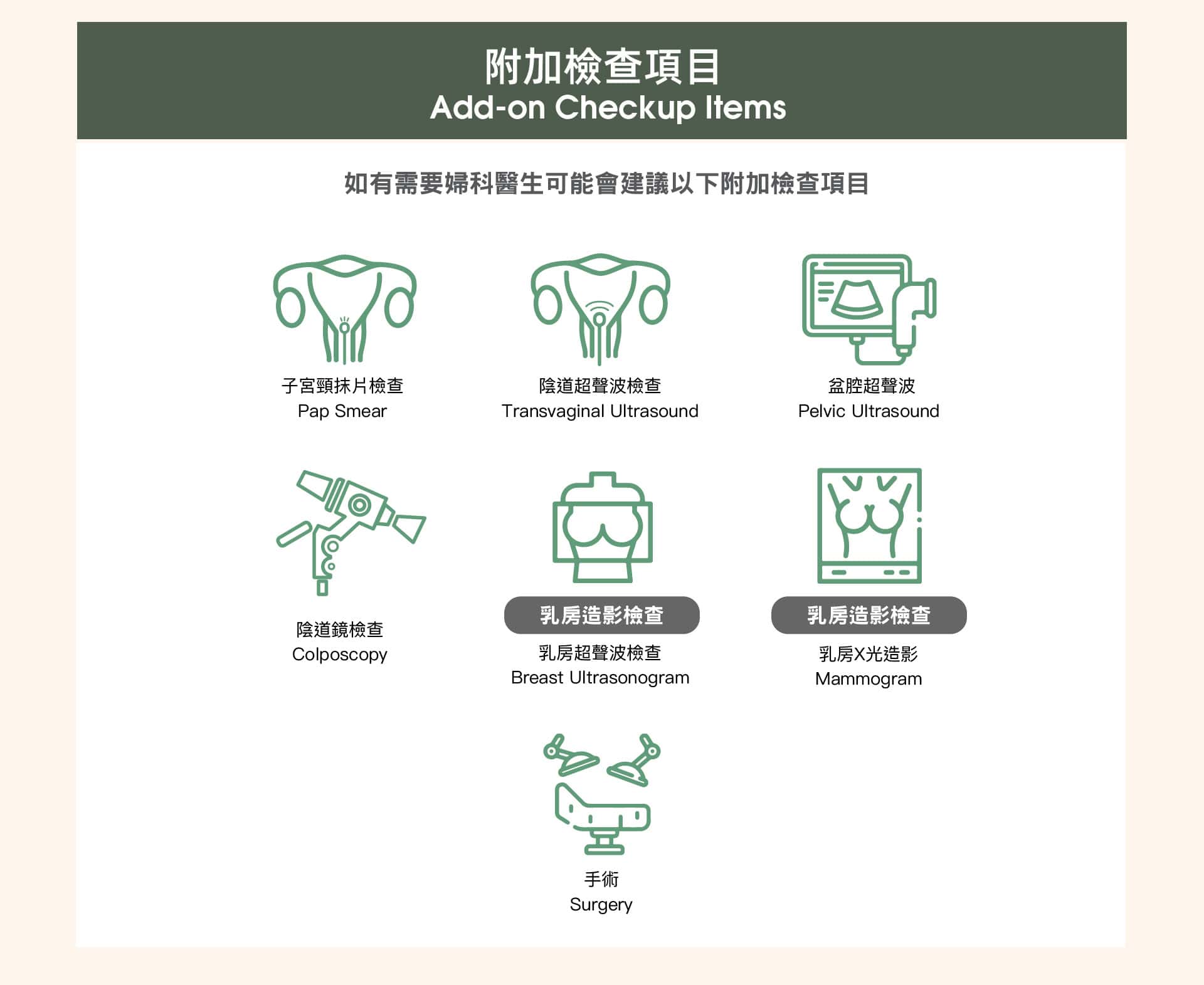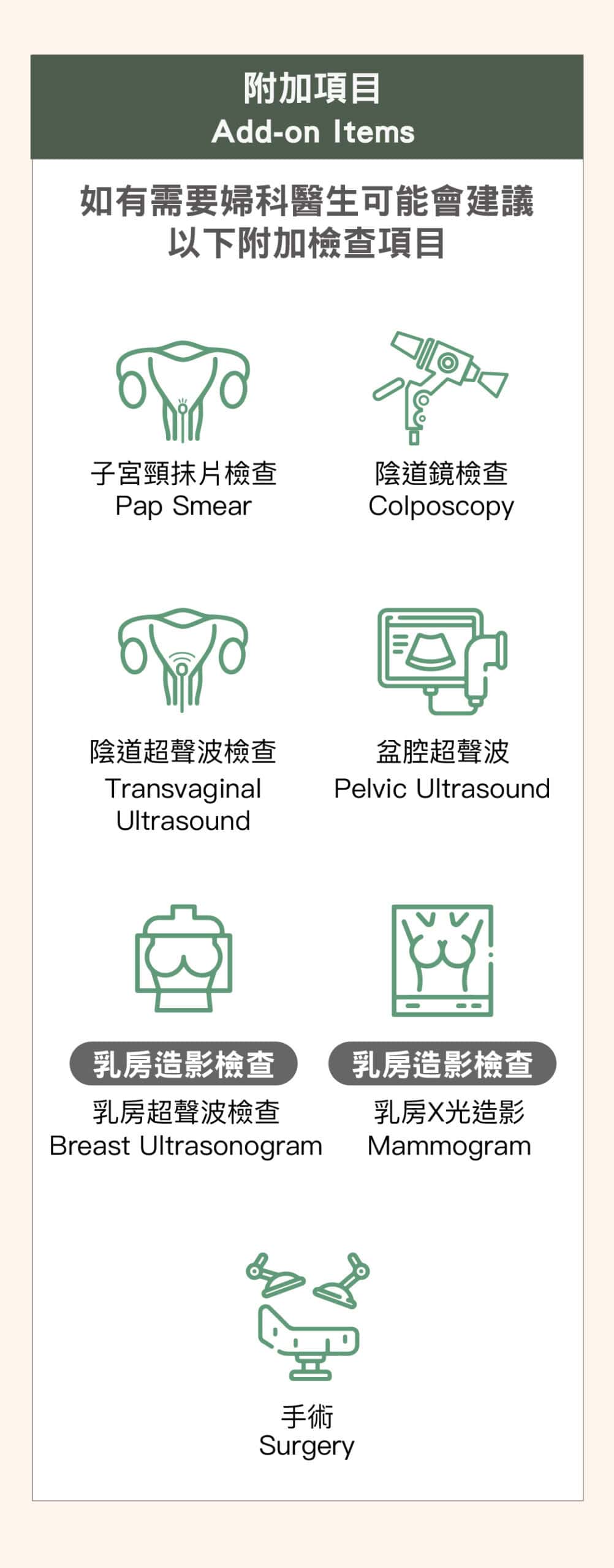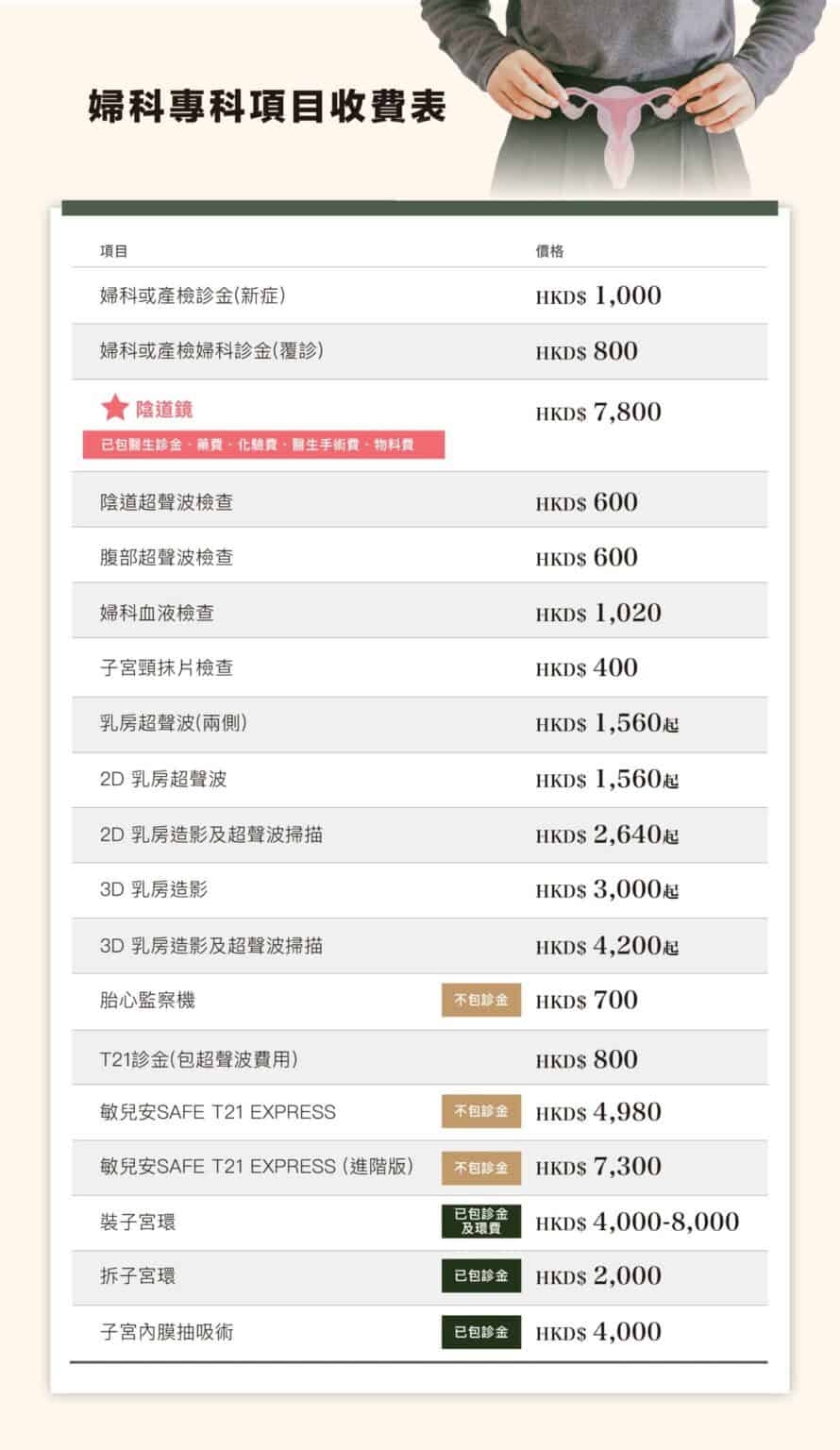 (項目均由婦科專科醫生主理)